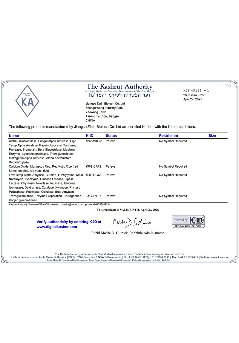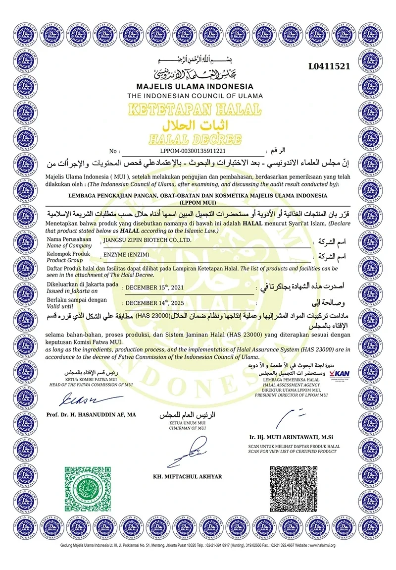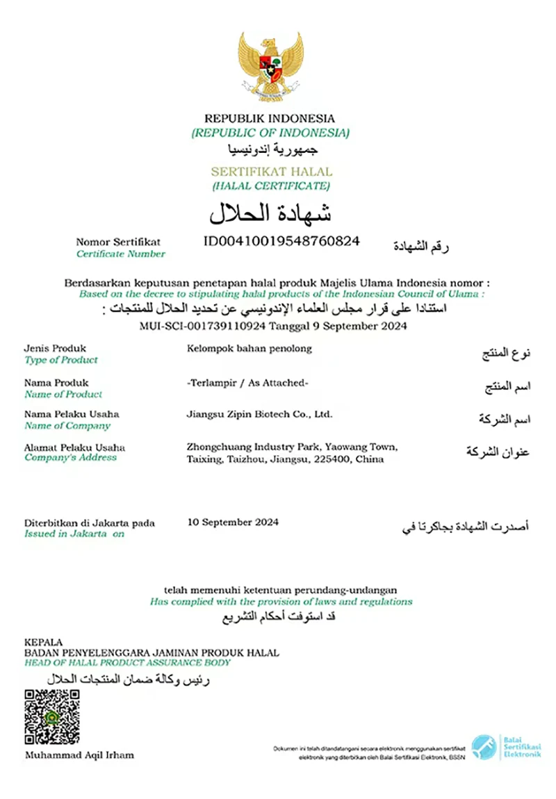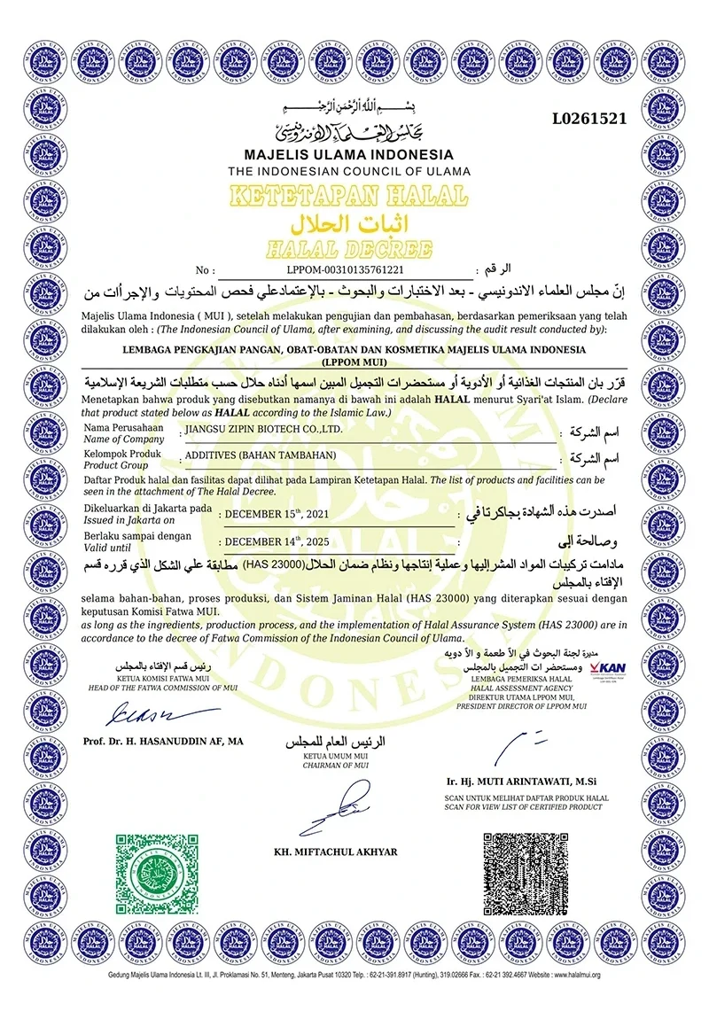 Jiangsu Zipin Biotech Co., Ltd. 2016-ban alakult, 20 000 ㎡ területen. Modern magánvállalkozásként jelenleg elsősorban élelmiszer-adalékanyagok kutatás-fejlesztésével, gyártásával és értékesítésével foglalkozunk. Fő termékeink aTranszglutamináz, Curdlan, ε-polilizin, Nisin, Natamycin és egyéb élelmiszer-adalékanyagok.